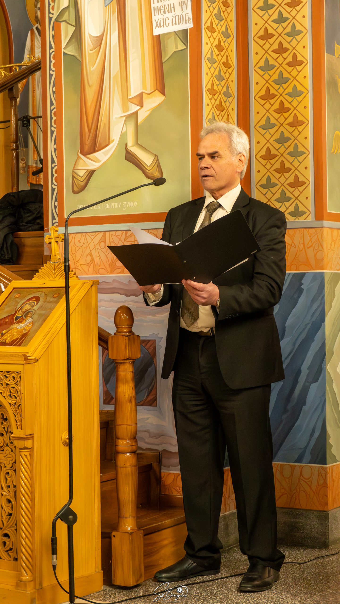 Ο τελευταίος έδωσε και τον τίτλο της εκδήλωσης, υπογραμμίζοντας το αίτημα του πιστού για την παραμυθία και τη μεσιτεία του Θεού: «Μεθ’ ἡμῶν γενοῦ…».